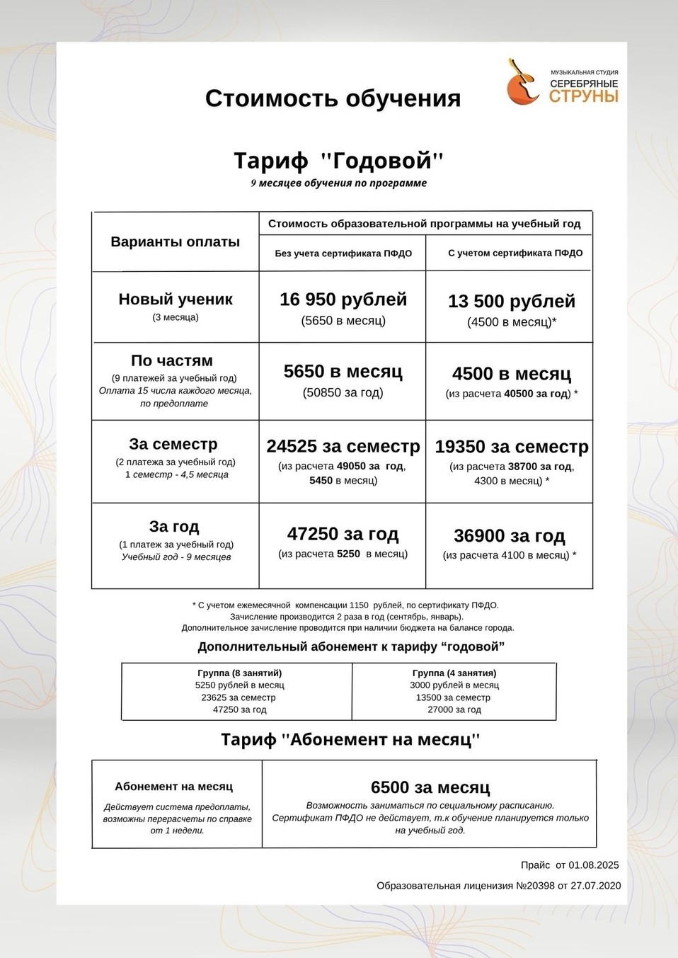 | | 2 урока в неделю в группе | 1 урок в неделю в группе | 2 урока в неделю индивидуально | 1 урок в неделю индивидуально |